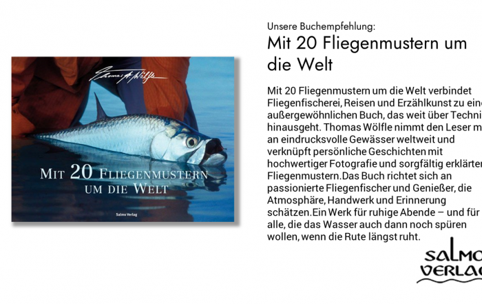 Rezension des Buches „Mit 20 Fliegenmustern um die Welt“ von Thomas Wölfle – Fliegenfischen, Reisen, Fotografie und Handwerk in erzählerischer Tiefe.